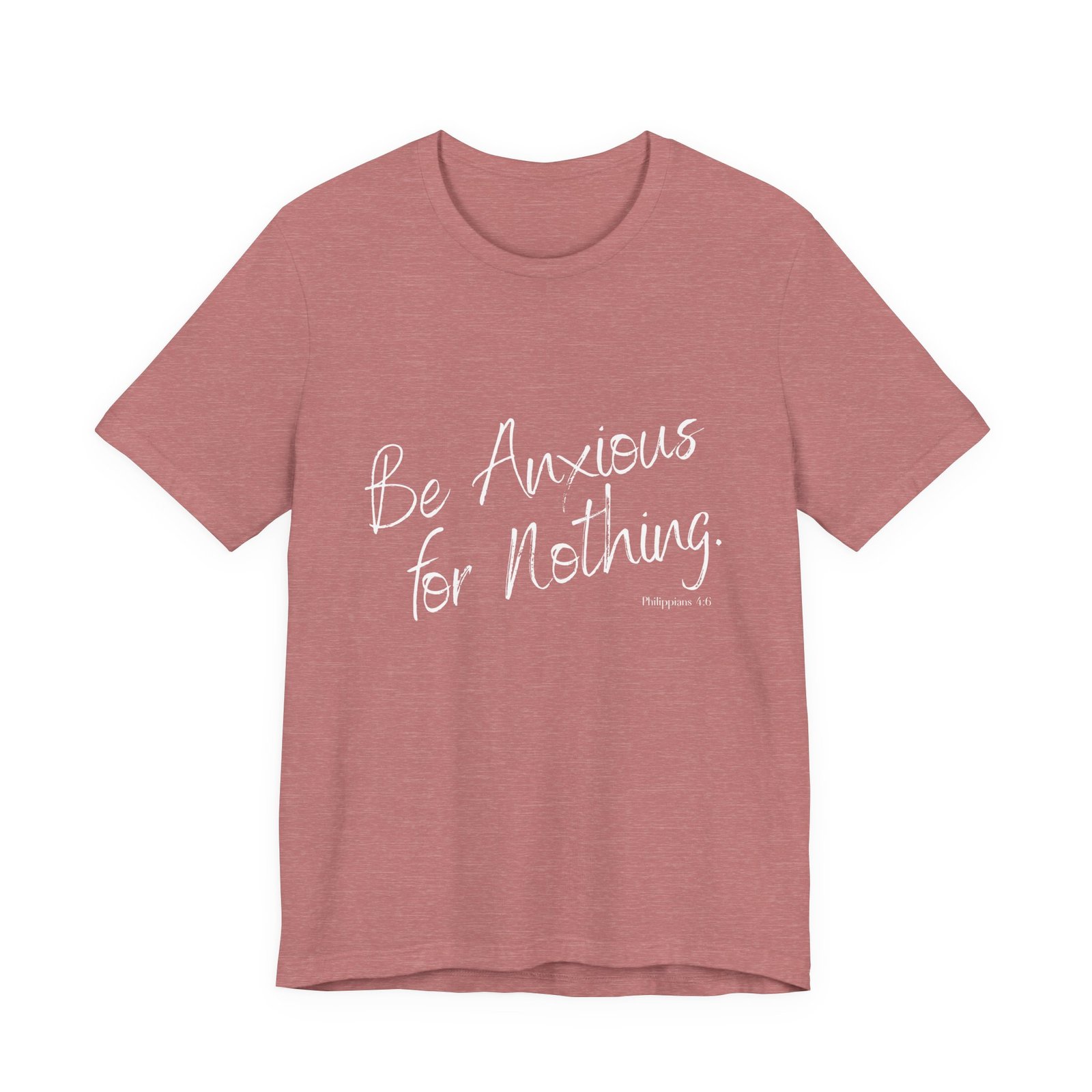 Find peace in style with this “Be Anxious for Nothing” women’s Bella + Canvas tee. Featuring the uplifting words of Philippians 4:6, this shirt is a gentle reminder to let go of worry and trust in God’s plan.