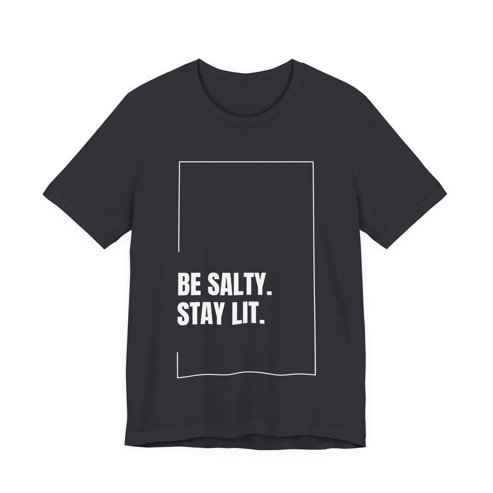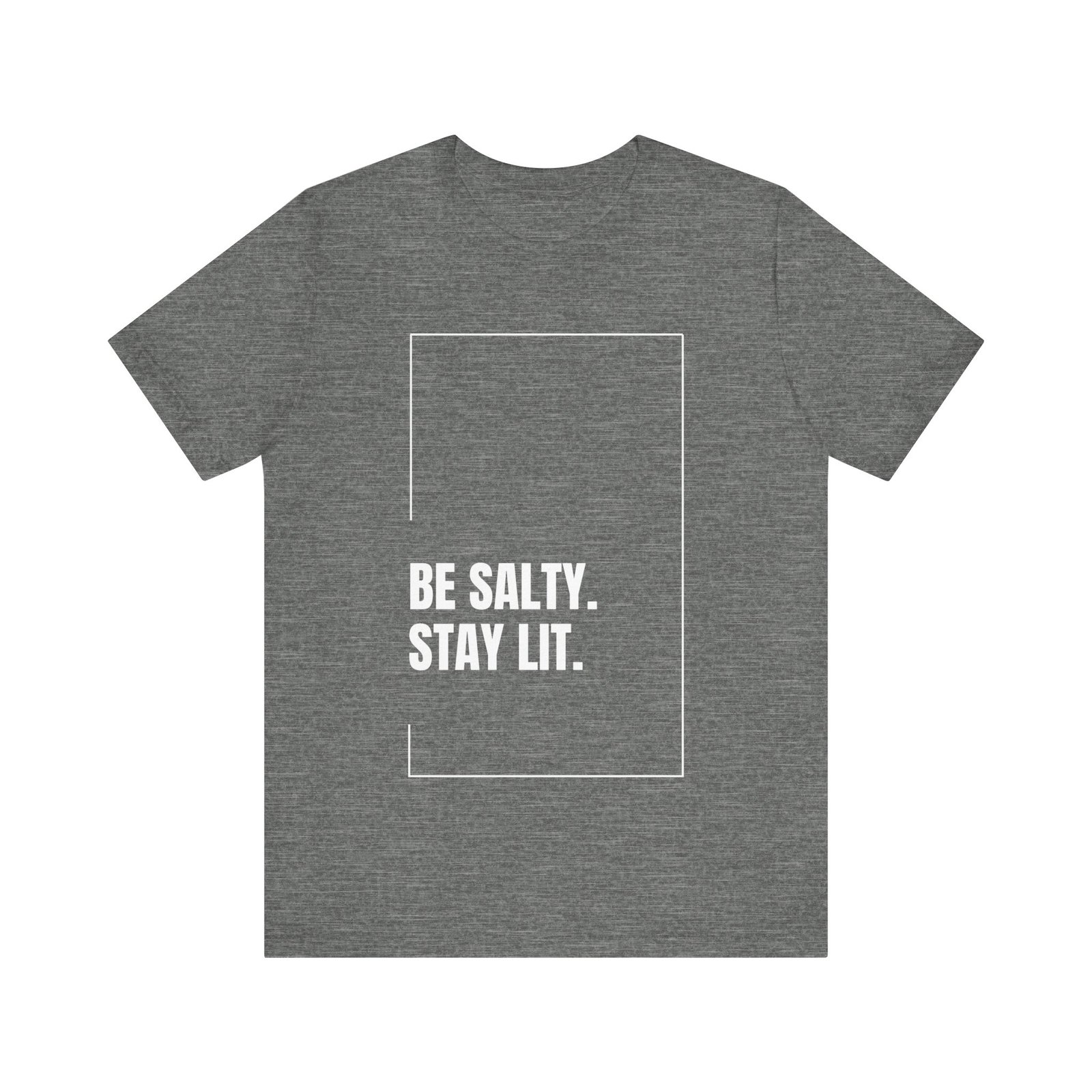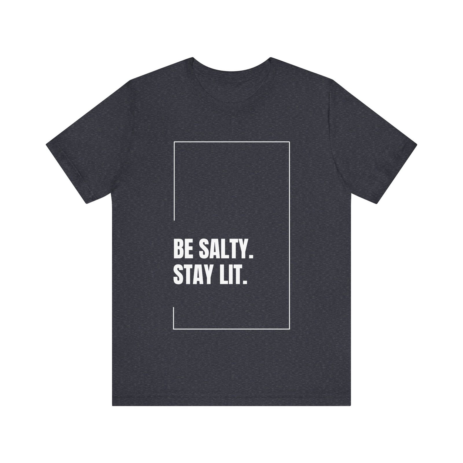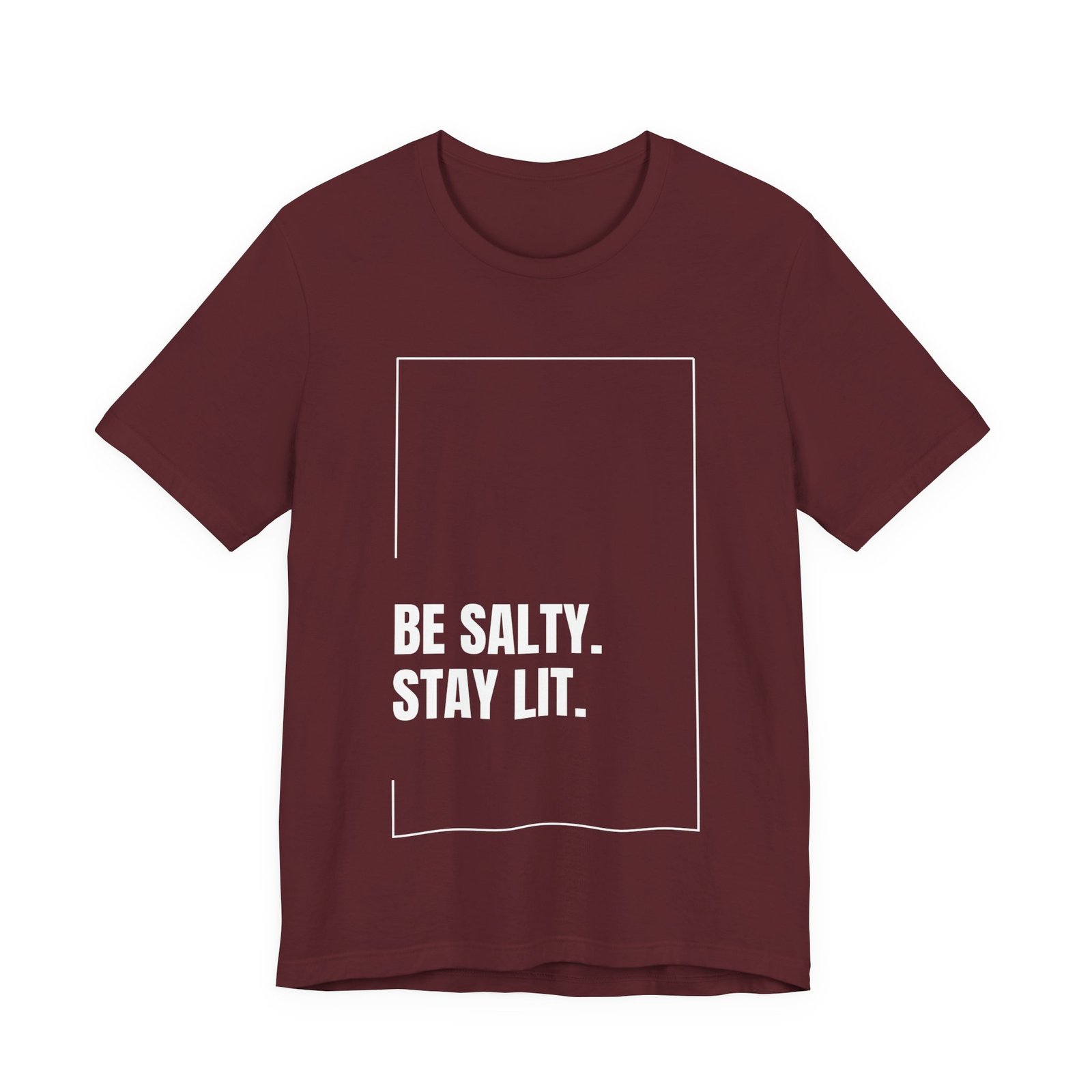 Spread joy and truth with this bold “Be Salty. Stay Lit.” Christian graphic tee! Inspired by Matthew 5:13-14, this Bella + Canvas unisex shirt is a modern take on the call to be “the salt of the earth” and “the light of the world.”