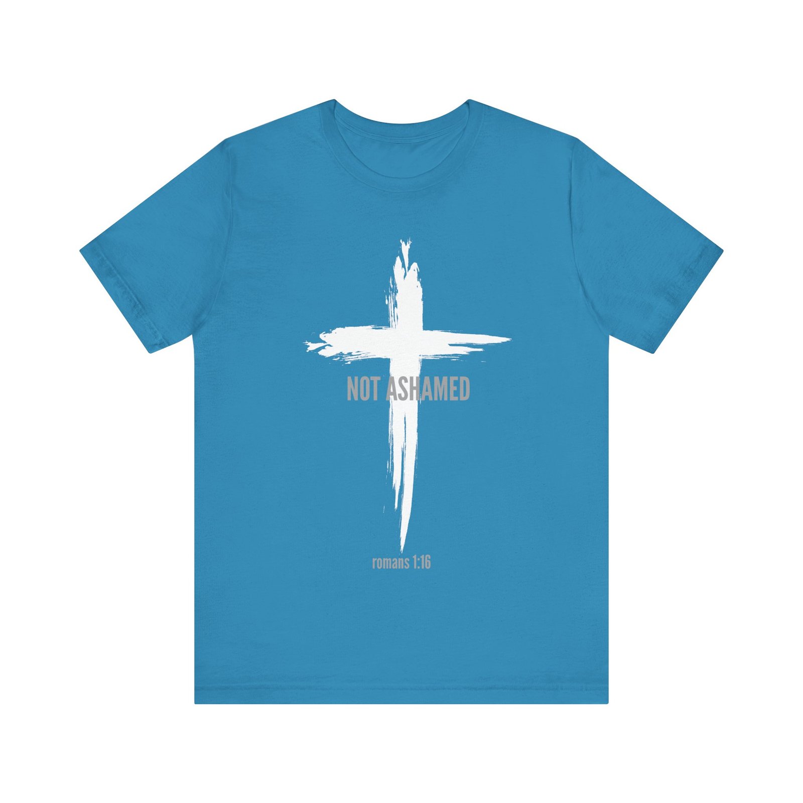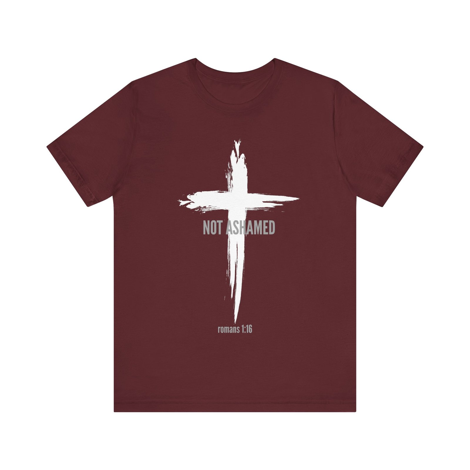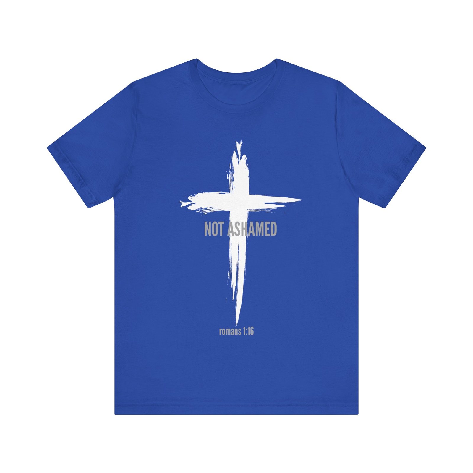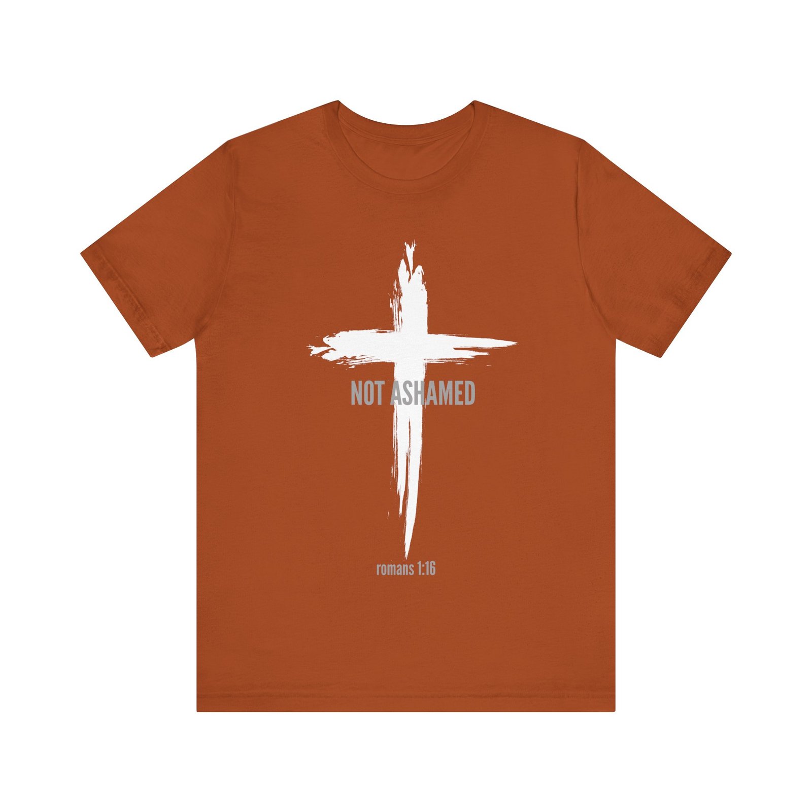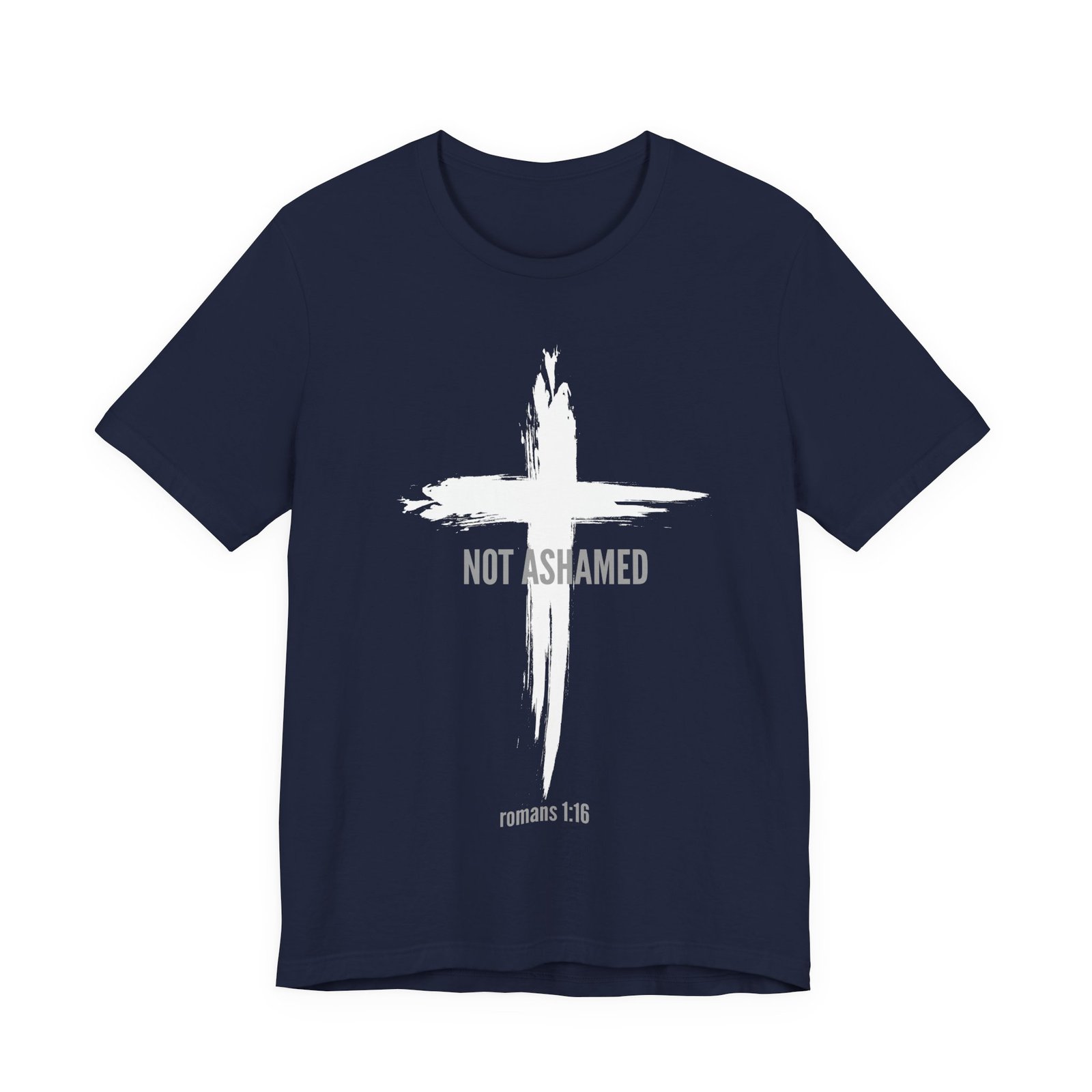 Not Ashamed Shirt – Bella Canvas Unisex Christian T-Shirt with Cross & Romans 1:16, Faith Graphic Tee, Bible Verse Apparel