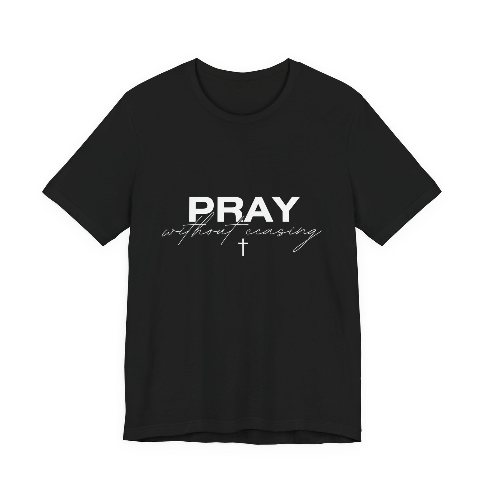 Pray Without Ceasing Shirt – Bella Canvas Unisex Christian T-Shirt with Delicate Cross, Faith Inspired Bible Verse Tee