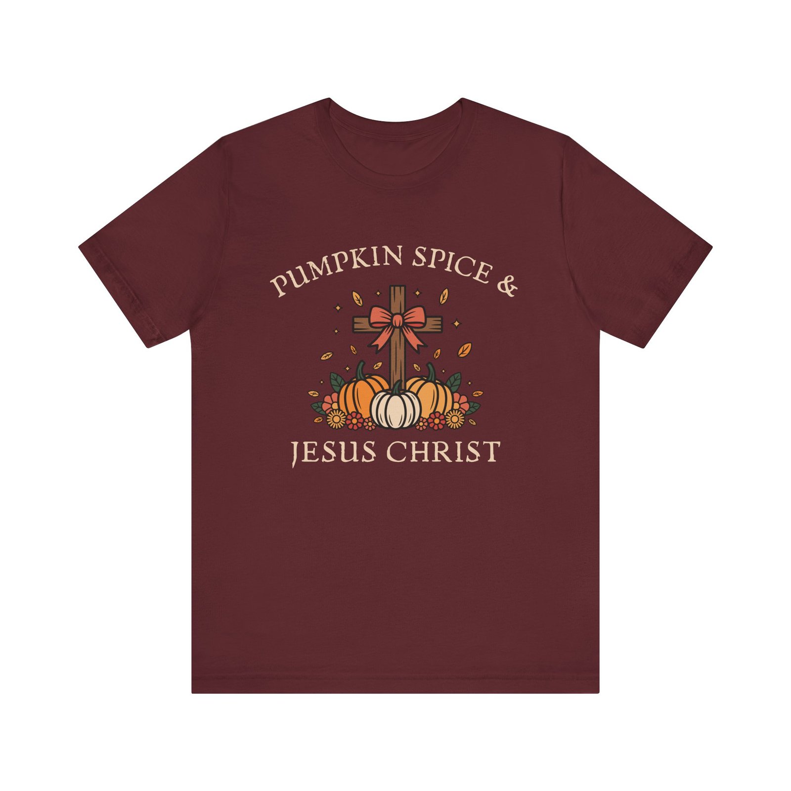 Pumpkin Spice and Jesus Christ – Bella Canvas Unisex T-shirt, Christian Fall Sweater, Faith & Coffee