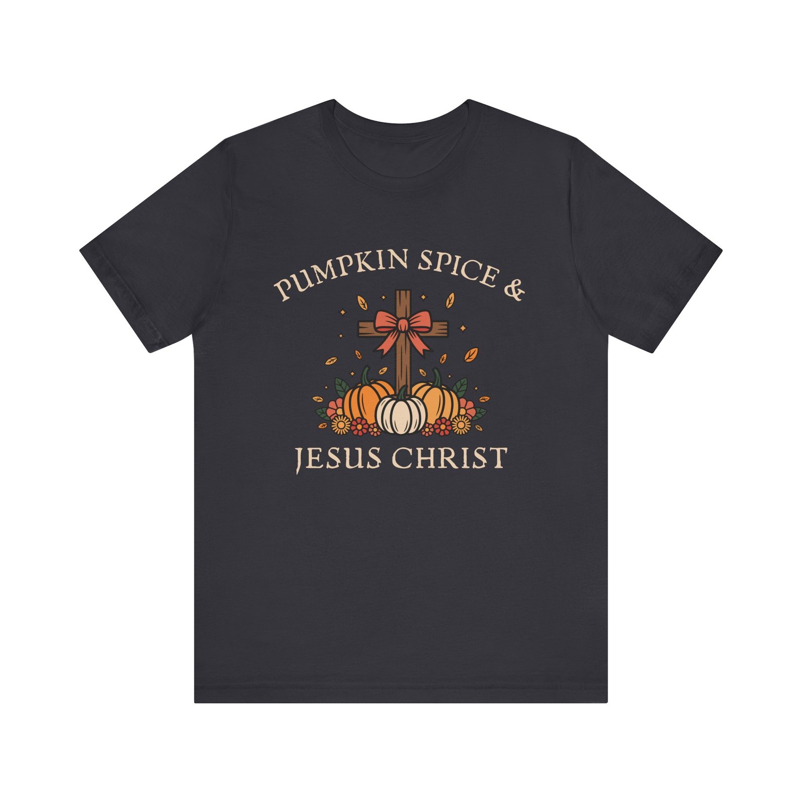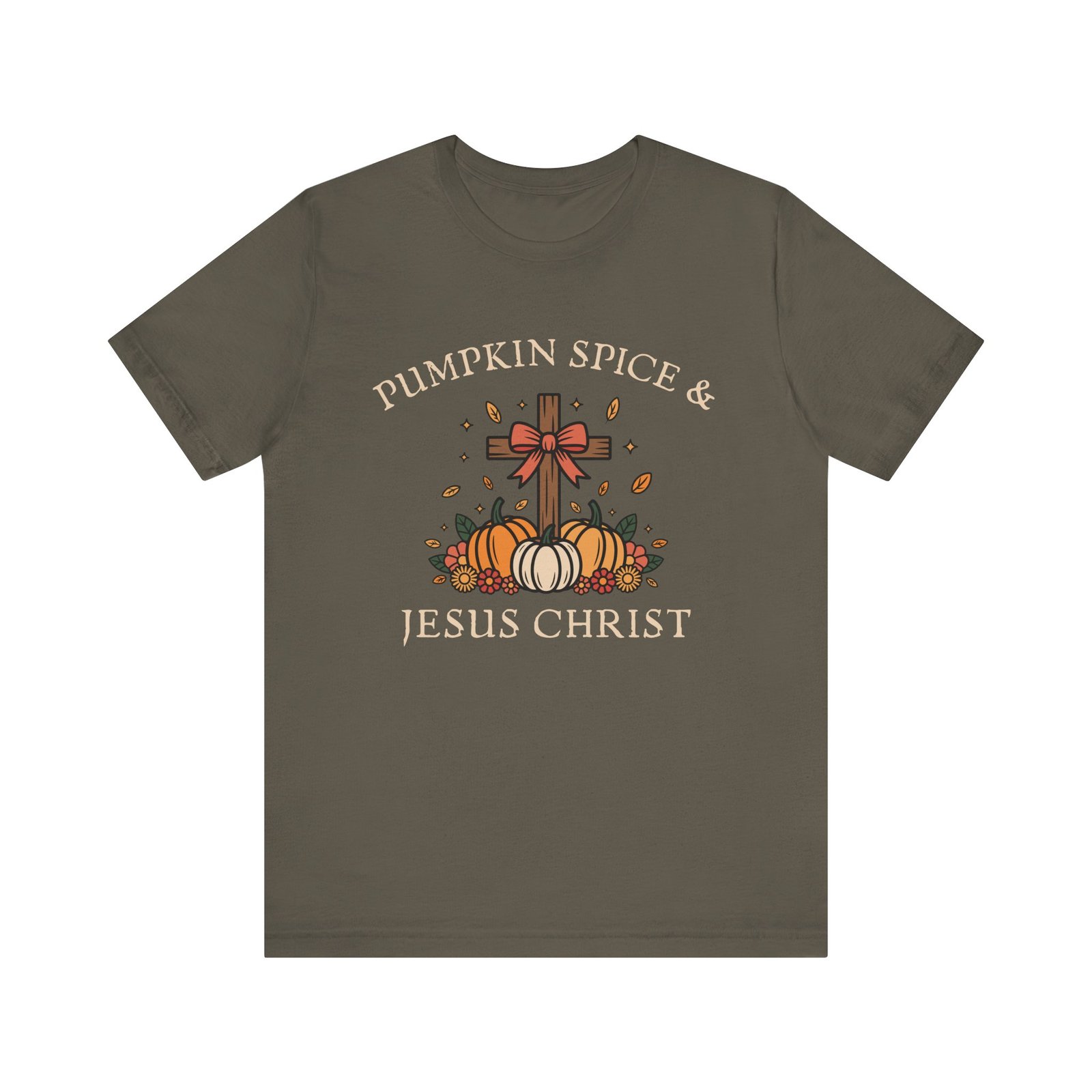 Pumpkin Spice and Jesus Christ – Bella Canvas Unisex T-shirt, Christian Fall Sweater, Faith & Coffee