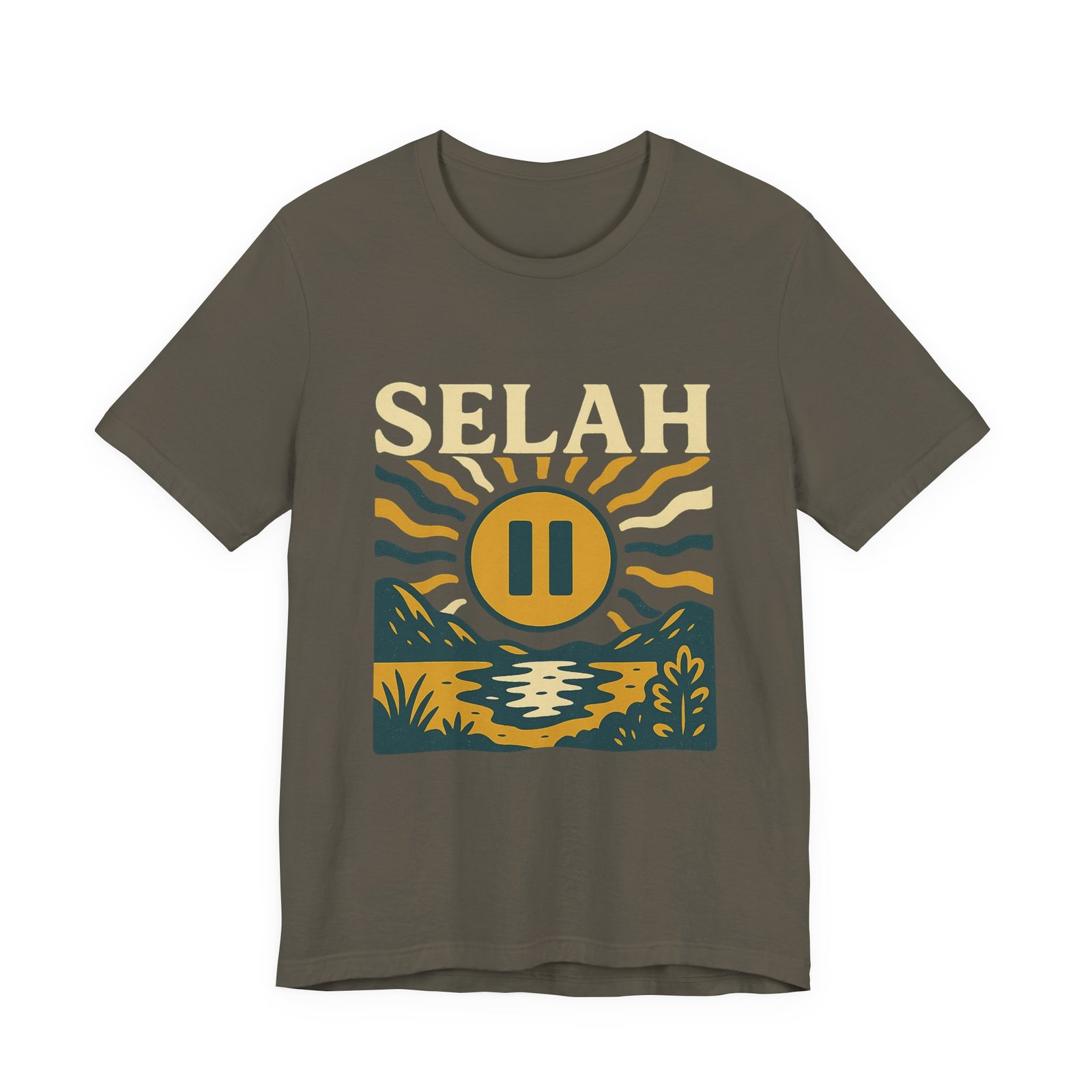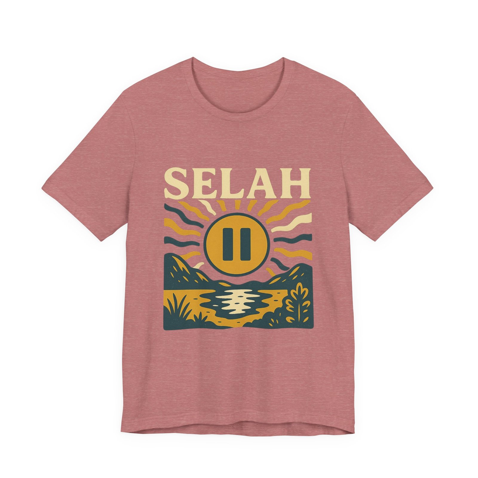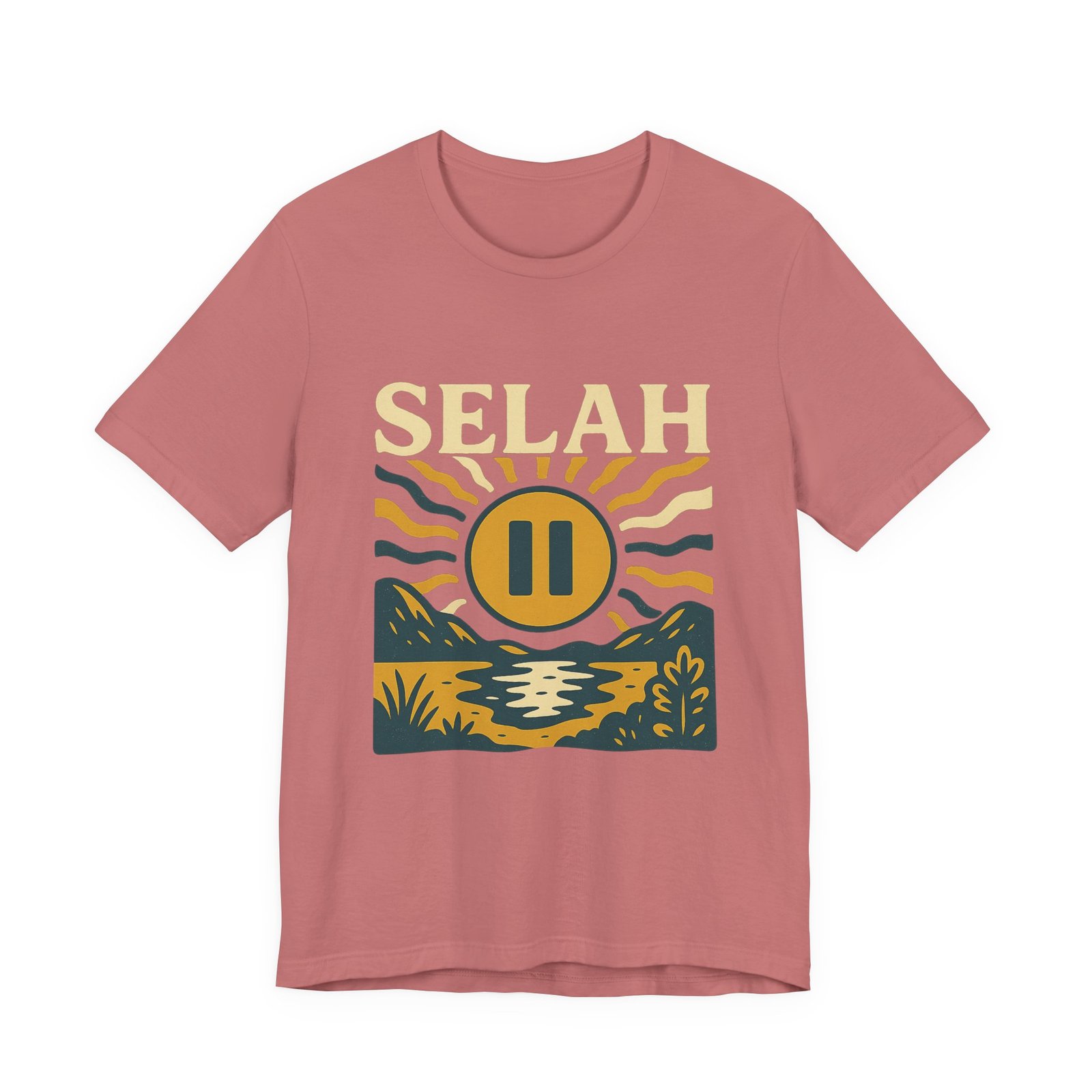 Selah Shirt – Bella Canvas Unisex Christian TShirt with Sunset Pause Button, Faith Inspired Graphic Tee