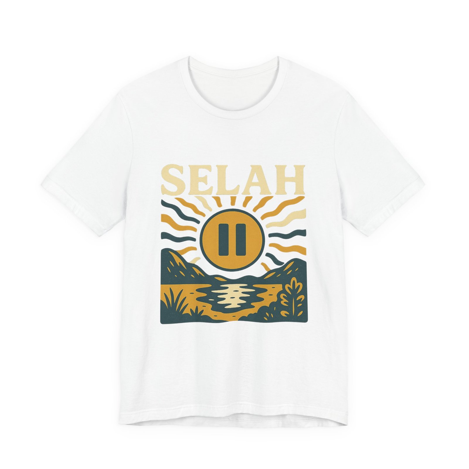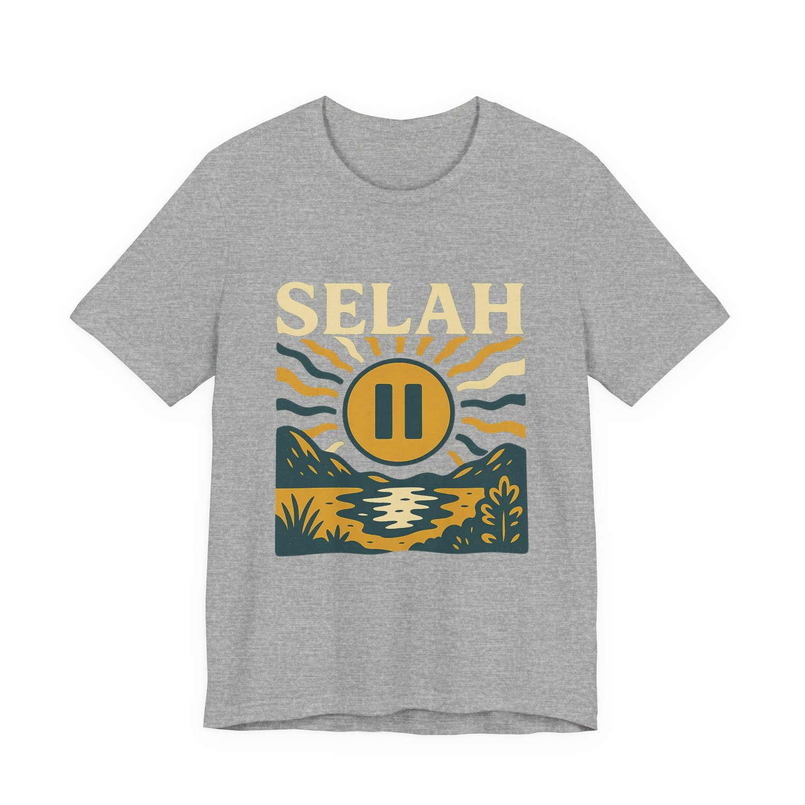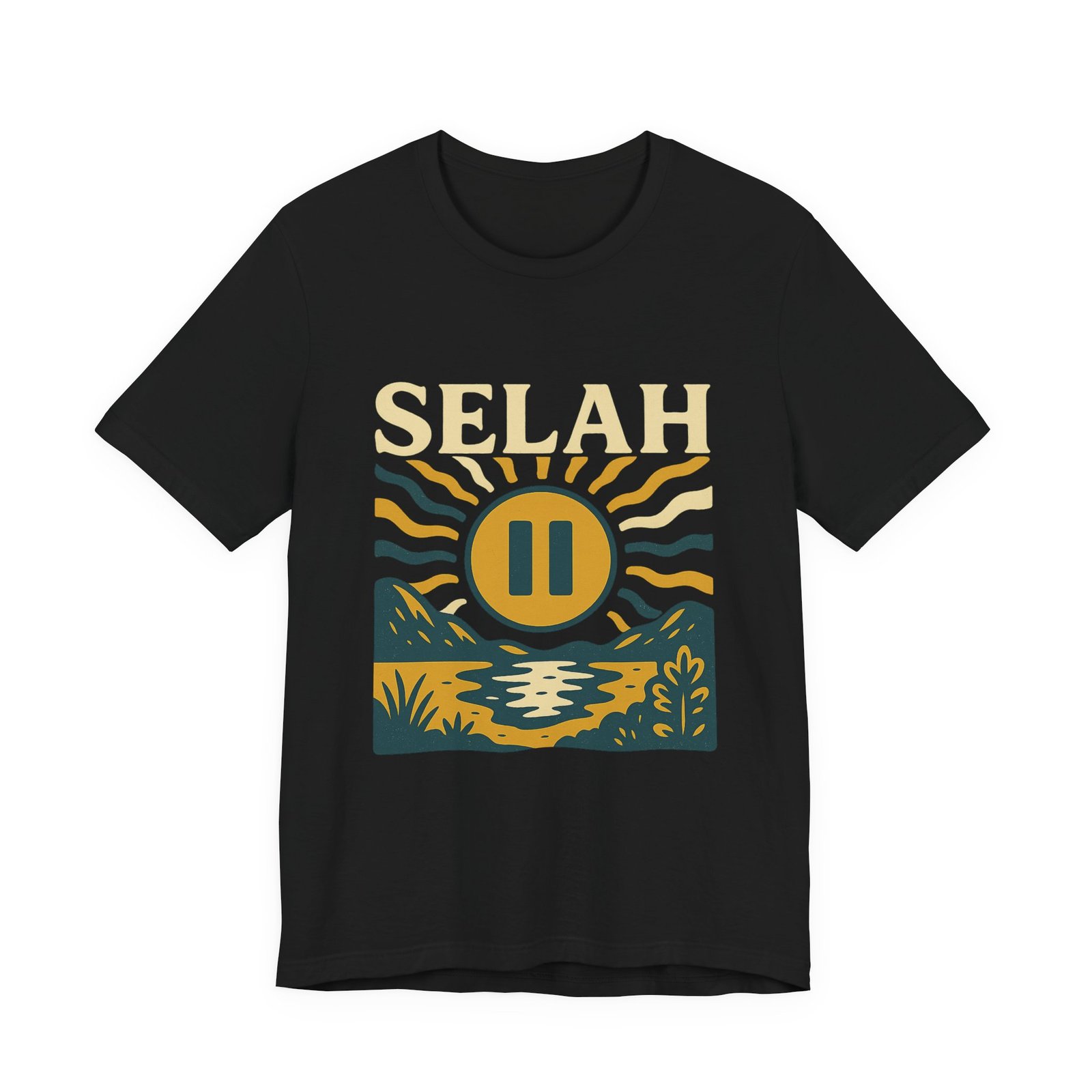 Selah Shirt – Bella Canvas Unisex Christian TShirt with Sunset Pause Button, Faith Inspired Graphic Tee