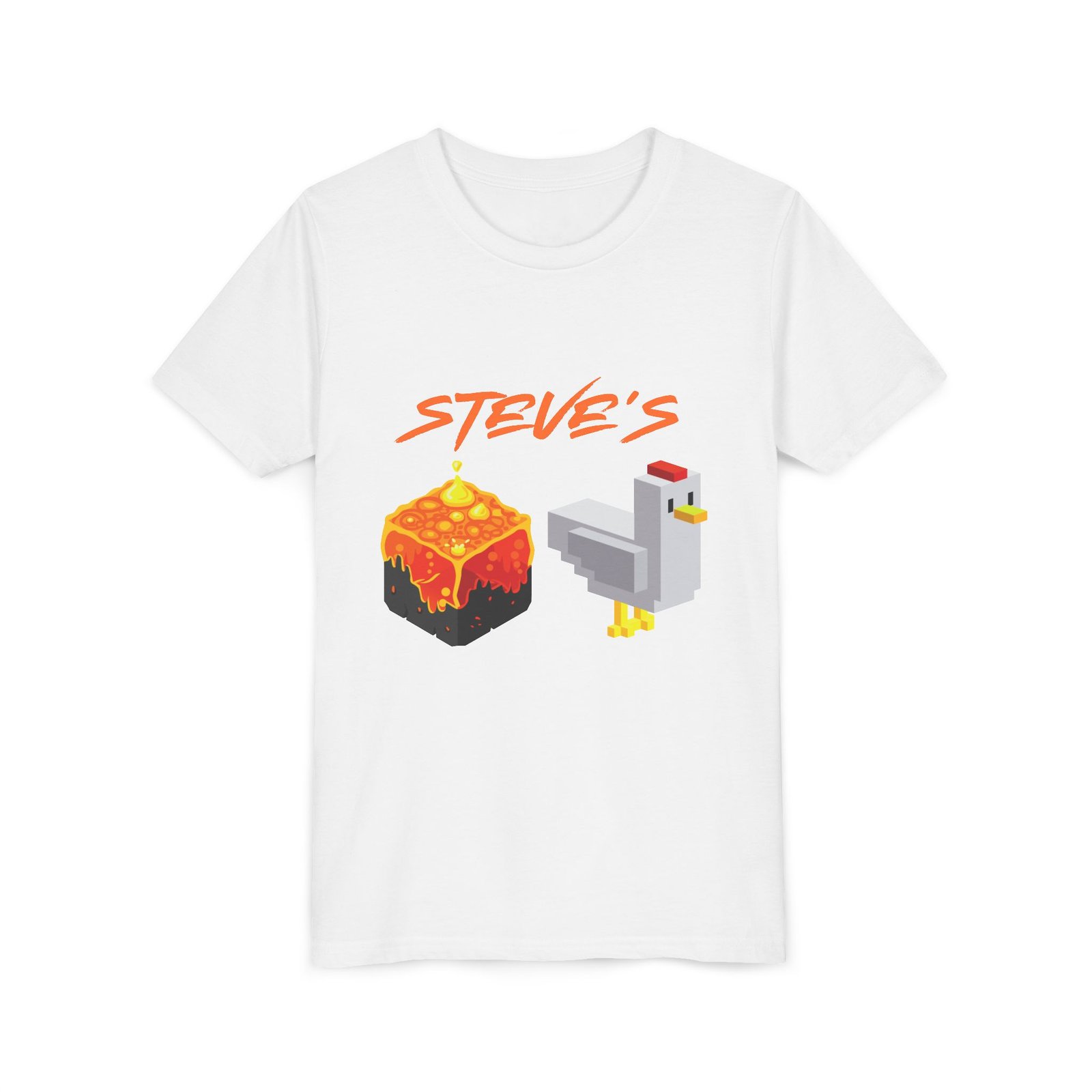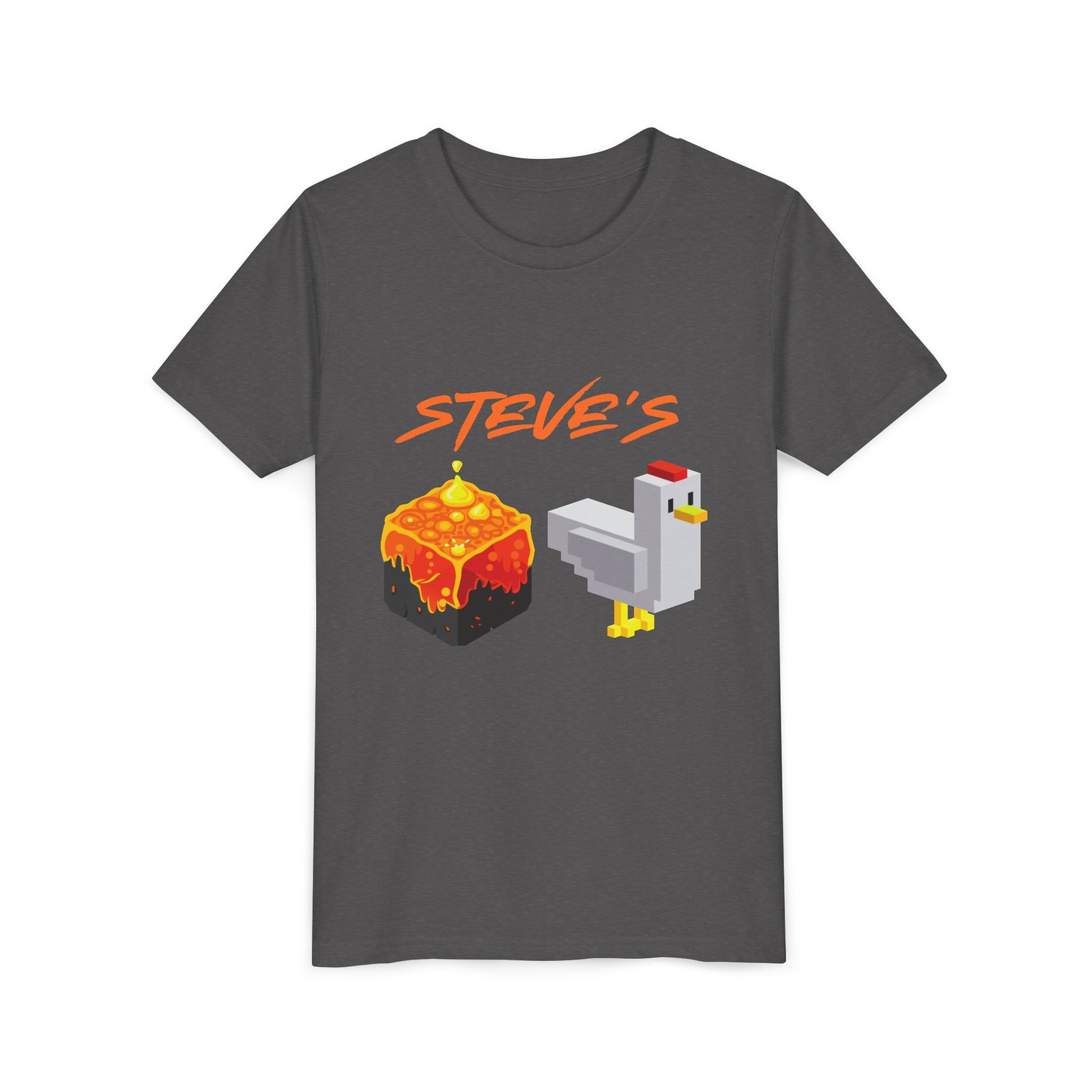 For the kid who knows what’s up—this “Steve’s” youth t-shirt brings together the duo of lava and a chicken in the most epic way possible. Quirky, playful, and a little mysterious, this shirt is bound to get laughs and start conversations.