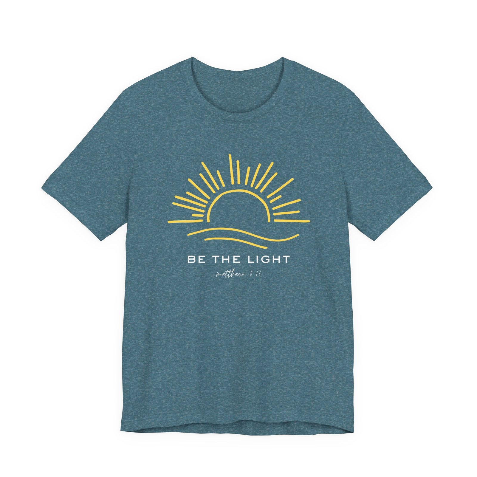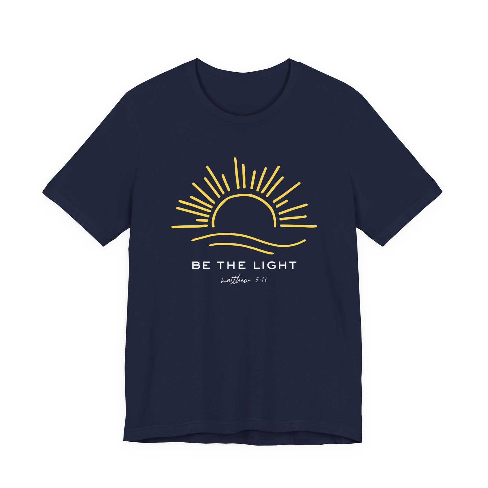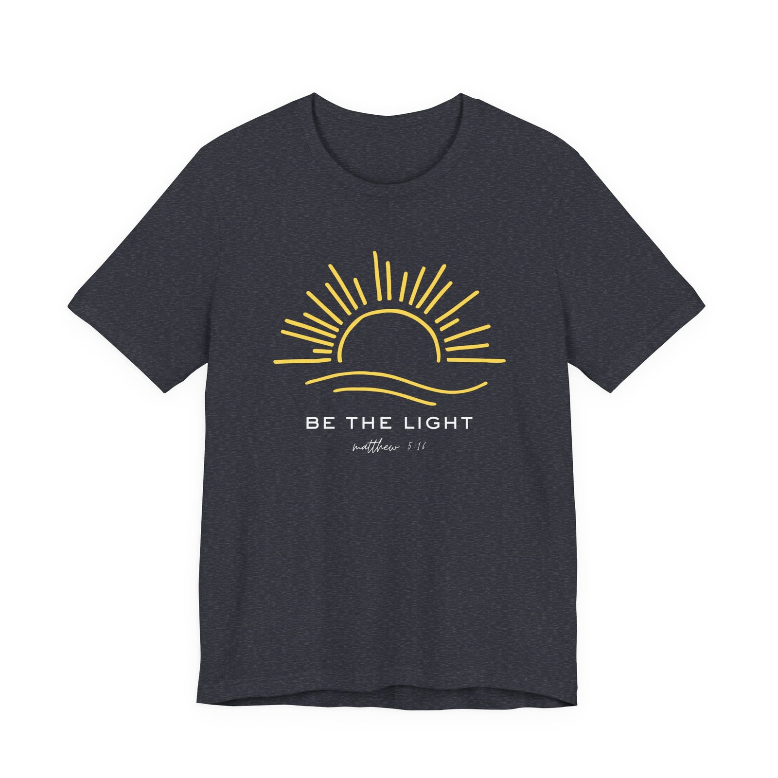 Shine your light wherever you go with this inspiring “Be the Light” t-shirt, featuring Matthew 5:16: “Let your light shine before others, that they may see your good deeds and glorify your Father in heaven.”  This soft, premium Bella + Canvas unisex tee is designed for comfort and purpose—perfect for everyday wear, church, youth group, or as a reminder to live boldly for Christ.  With its clean, uplifting design, it’s a simple yet powerful way to share your faith.